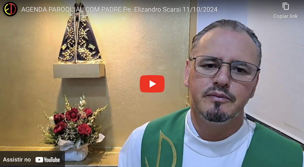 Padre Elizandro scarsi convida a comunidade para as missas da comunidade, com destaque para a Festa de Nossa Senhora Aparecida do Bairro Jardim Progresso , o evento conta com santa Missa as 10h ao meio dia almoço festivo e a tarde grandioso Bingo.
