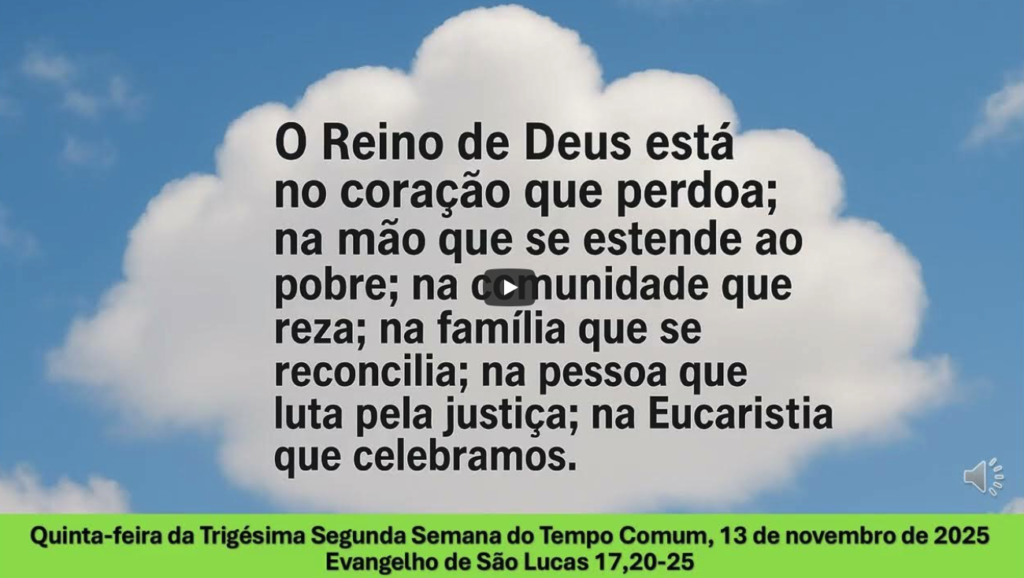 O Reino de Deus não é espetáculo nem acontecimento futuro. Ele está aqui, agora, em cada gesto de amor e misericórdia. Para percebê-lo, precisamos de um coração atento e humilde, capaz de reconhecer a presença de Deus nas pequenas coisas e nas pessoas ao nosso redor.
