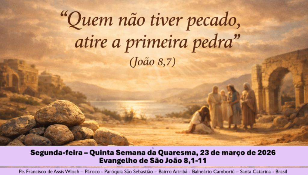 A reflexão desta segunda-feira, 23 de março, traz uma das passagens mais marcantes do Evangelho: “Quem não tiver pecado, atire a primeira pedra” (João 8,7).
